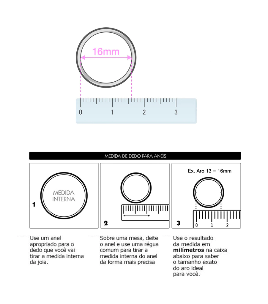Este anel é feito com base de liga de metal e passa pelo mesmo processo de uma semijóia, onde recebe a aplicação da cor folhada e o verniz de proteção. Como qualquer semijóia, deve ter cuidados relacionados ao uso para evitar o desgate e descoloração e assim prolongar a vida útil do produto. Sugerimos que seja retirado antes do banho no mar ou piscina e a limpeza deve ser feita apenas com um pano úmido, sem contato com produtos químicos.